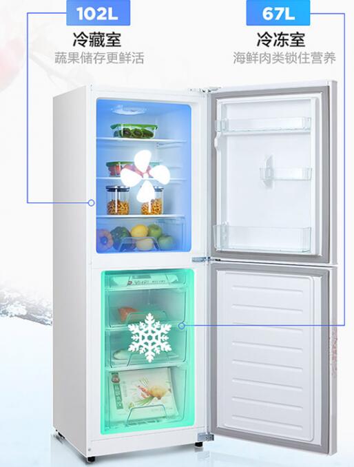 這款冰箱身子板雖小,但里面的容量可不小,冷藏室的容量為102L,冷凍室的容量為67L,平衡空間與收納,載重量可容納一周的美味,不占空間,充分為其他家居產(chǎn)品騰出充足的空間,是一款非常適合居家的冰箱。
