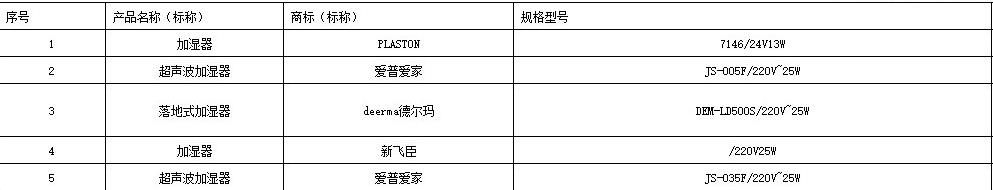 本次抽查發(fā)現(xiàn)5批次產(chǎn)品的安全性指標(biāo)不符合標(biāo)準(zhǔn)要求,涉及的不合格項目為:標(biāo)志和說明、穩(wěn)定性和機械危險、結(jié)構(gòu)。其中,商標(biāo)(標(biāo)稱)為“PLASTON”的1批次加濕器樣品被檢出標(biāo)志和說明、穩(wěn)定性和機械危險項目不合格;商標(biāo)(標(biāo)稱)為“愛普愛家”的2批次超聲波加濕器樣品被檢出標(biāo)志和說明項目不合格;商標(biāo)(標(biāo)稱)為“deerma德爾瑪”的1批次落地式加濕器樣品被檢出標(biāo)志和說明、穩(wěn)定性和機械危險項目不合格;商標(biāo)(標(biāo)稱)為“新飛臣”的1批次加濕器樣品被檢出標(biāo)志和說明、結(jié)構(gòu)項目不合格。