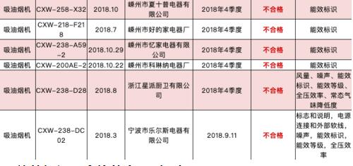 而因為風量、噪聲、能效等級、全壓效率、常態(tài)氣味降低度以及能效標識不合格的產(chǎn)品型號有: