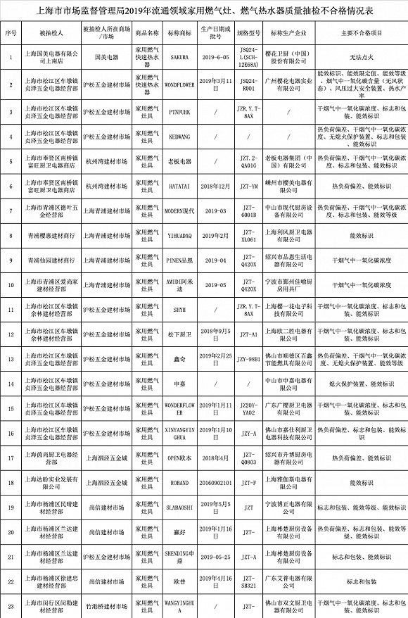 近日,上海市市場監(jiān)管局對市場上銷售的49批次家用燃?xì)庠睢⒓矣萌細(xì)?a >熱水器進(jìn)行抽檢,發(fā)現(xiàn)23批次產(chǎn)品不合格(其中2批次為三無產(chǎn)品)。涉及老板電器、櫻花衛(wèi)廚、歐普和松下廚衛(wèi)等知名品牌。