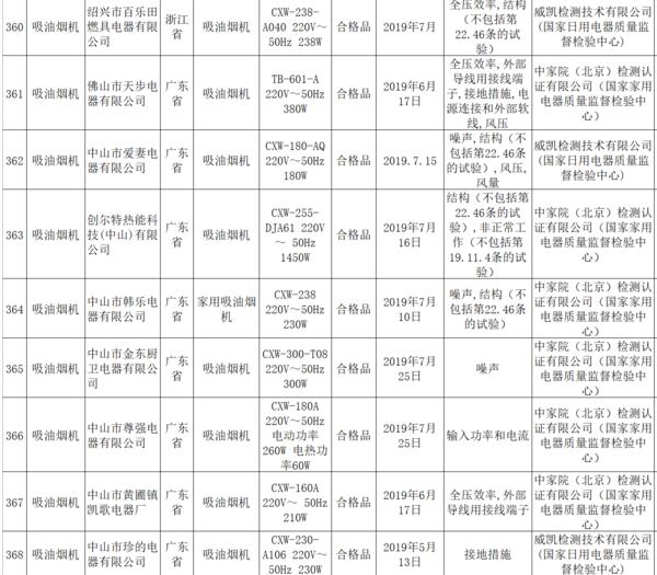 在吸油煙機方面,抽查了5個。ㄊ校40家企業(yè)生產(chǎn)的40批次吸油煙機產(chǎn)品,其中9批次產(chǎn)品不合格,不合格發(fā)現(xiàn)率為22.5%。不合格項目涉及輸入功率和電流、非正常工作、噪聲等。涉及的企業(yè)包括紹興市百樂田燃具電器有限公司、佛山市天步電器有限公司、中山市愛妻電器有限公司等。
