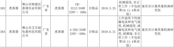 在煮蛋器方面,抽查了4個省(市)18家企業(yè)生產(chǎn)的18批次煮蛋器產(chǎn)品,其中2批次產(chǎn)品不合格,不合格發(fā)現(xiàn)率為11.1%。不合格項目涉及工作溫度下的泄漏電流和電氣強度、耐潮濕等。涉及兩家企業(yè),分別是佛山市順德區(qū)嘉壕實業(yè)有限公司和佛山市艾貝麗電器科技有限公司。