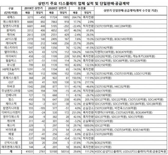 其中,中國華星光電是他們最大的客戶,自1月1日至6月30日,華星光電共與韓國顯示器制造商簽訂了總價值3818億韓元的14份合同。