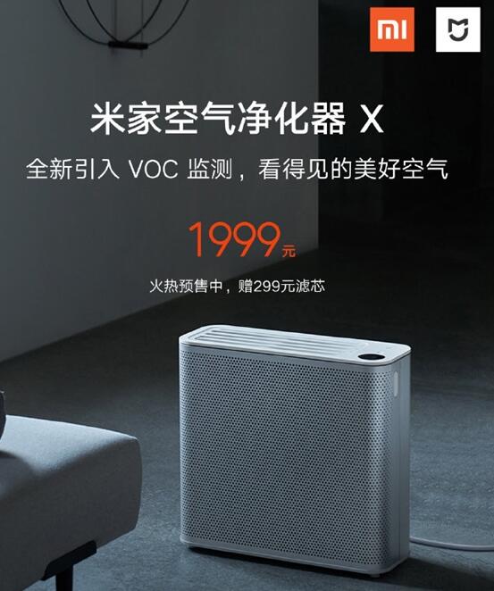 目前,米家空氣凈化器X已在小米商城、小米京東、天貓開啟預(yù)售,售價1999元,參與預(yù)售將獲贈299元的濾芯一個。