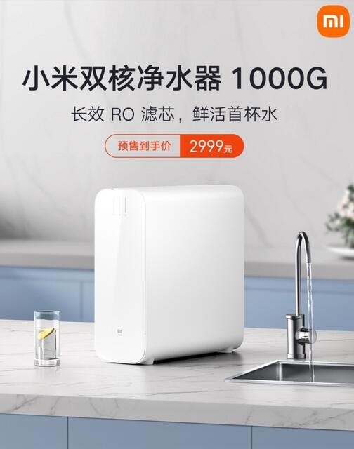 小米方面現(xiàn)宣布小米雙核凈水器1000G上市,預(yù)售價2999元,3月8日支付尾款。