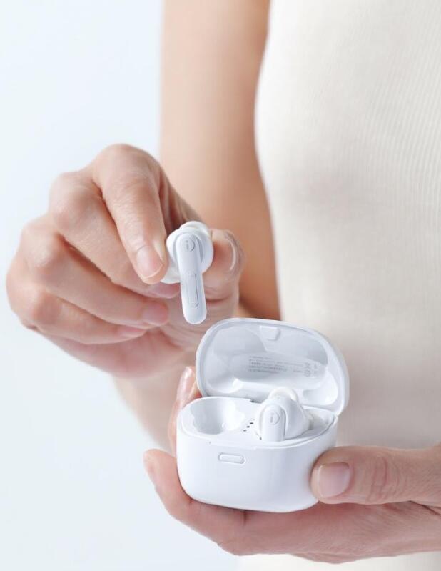 區(qū)別于傳統(tǒng)助聽器“顯眼”的外觀,訊飛智能助聽器采用流行的TWS耳機造型,貼合耳道,佩戴體驗更舒適,這個耳機造型也減輕了患者佩戴時的心里壓力。
