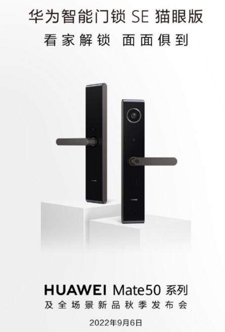 9月6日,華為Mate50系列及全場景新品秋季發(fā)布會(huì)舉行,今天華為官方預(yù)熱華為智能門鎖SE貓眼版新品,也將在9月6日發(fā)布。