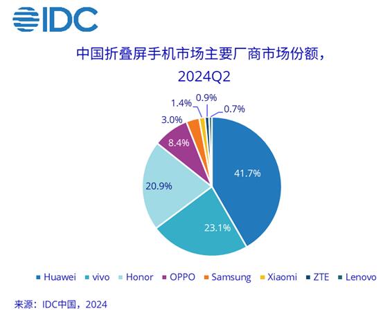 日前,調(diào)研機構(gòu)IDC發(fā)布2024年第二季度中國折疊屏手機市場份額,該季度出貨量共257萬臺。