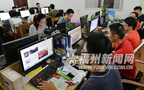 21日,記者來到橘園洲大橋旁的閩侯縣建平村。在一家工廠的一樓展廳,工人們忙著打包大板桌等家具,準(zhǔn)備發(fā)往全國各地。二樓的電商辦公室里,三四十名客戶服務(wù)人員正盯著電腦處理訂單(如圖)。