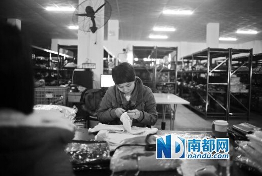 位于白云區(qū)的一家外貿(mào)服裝平臺(tái)辦公室,工作人員正在打包服裝