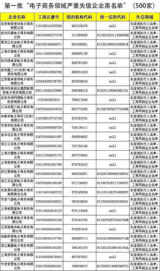 [摘要]在全國(guó)信用信息共享平臺(tái)上有關(guān)部門共享的黑名單信息中,經(jīng)分析比對(duì),共梳理出電子商務(wù)黑名單企業(yè)6440家,其中首批500家已在“信用中國(guó)”網(wǎng)站公布