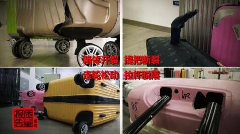 提把、拉桿結(jié)不結(jié)實,直接影響箱包正常使用。但是問題最多的恰恰就是這兩個部位的檢測。71批次不合格,53批次就出在了提把和拉桿的牢固度上,這些提把,都在檢測中斷裂。其它問題比如箱體變形破損、走輪連接松動,也出現(xiàn)一定比例的不合格批次。