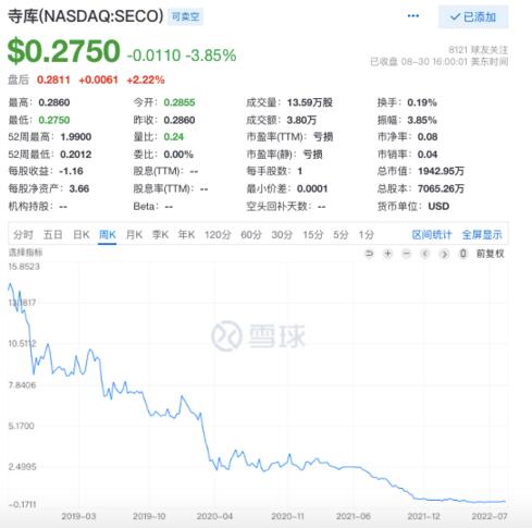 其實(shí),寺庫的困境早已有跡可循。據(jù)記者了解,自2021年下半年以來,寺庫便因不發(fā)貨、不退款、不退貨等問題屢遭用戶投訴;該公司在近兩年關(guān)聯(lián)的法律訴訟也已達(dá)上百條。2022年8月17日,寺庫更是被傳出總部大樓已“人去樓空”,不過遭到官方否認(rèn)。此外,寺庫的股價(jià)早已跌破1美元/股的警戒線,游走于退市邊緣,公司業(yè)績也由盈轉(zhuǎn)虧、疲態(tài)盡顯。