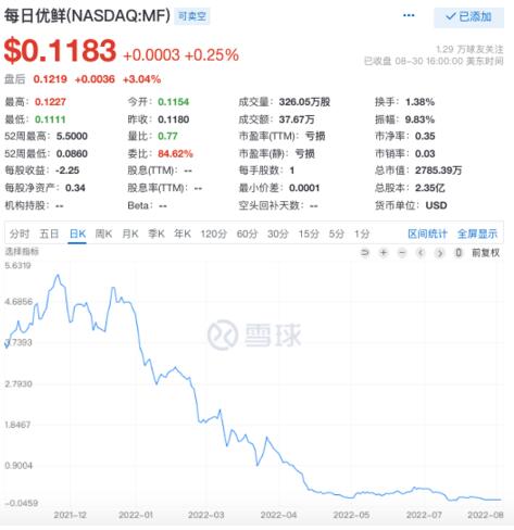 與寺庫有類似遭遇的是同樣赴美上市、身處生鮮電商賽道的每日優(yōu)鮮。自2021年底,每日優(yōu)鮮便被傳存在拖欠部分供應(yīng)商貨款的情況;今年5月及6月,由于未能按時(shí)提交2021年年度業(yè)績報(bào)告,以及ADS的收盤價(jià)連續(xù)30個(gè)交易日內(nèi)低于1美元,每日優(yōu)鮮接連兩次收到納斯達(dá)克上市資格部門發(fā)出的通知函。期間,坊間不時(shí)傳出有關(guān)每日優(yōu)鮮資金鏈緊張的消息。