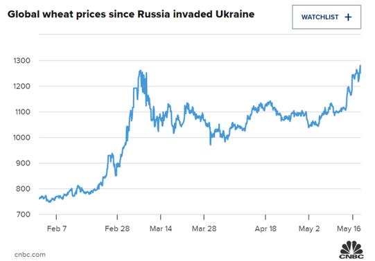 自2月底俄烏沖突爆發(fā)以來,黑海地區(qū)的小麥出口量大幅下降,小麥及其他大宗商品價格不斷飆升。俄羅斯和烏克蘭是世界上最重要的小麥生產國之一,受沖突影響,目前有數百萬噸糧食滯留在烏克蘭港口。聯(lián)合國已經發(fā)出警告,稱全球面臨著潛在的糧食短缺。