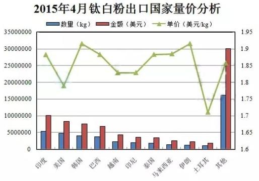 4月傳統(tǒng)的主要出口目的地巴西、美國(guó)數(shù)量明顯下降。巴西方面,更多的是受到匯率的困擾,由于我國(guó)鈦白粉出口巴西多采用美元交易,近一年來(lái)隨著雷亞爾對(duì)美元匯率持續(xù)暴跌,使得出口巴西利潤(rùn)明顯減少;美國(guó)方面,4月工業(yè)產(chǎn)出環(huán)比下降0.3%,連續(xù)第五個(gè)月下滑,美國(guó)經(jīng)濟(jì)復(fù)蘇疲軟,其國(guó)內(nèi)鈦白粉供應(yīng)充裕,造成對(duì)中國(guó)鈦白粉需求減弱。與之相對(duì)的是,印度及越南地區(qū)保持高速增長(zhǎng),其地理位置及經(jīng)濟(jì)發(fā)展現(xiàn)狀促使其對(duì)中國(guó)鈦白粉將會(huì)保持較高的需求,國(guó)內(nèi)企業(yè)可考慮更多的發(fā)展當(dāng)?shù)乜蛻?促進(jìn)鈦白粉外貿(mào)銷售。