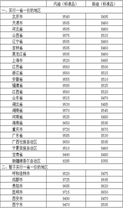 附:各省區(qū)市和中心城市汽、柴油最高零售價格