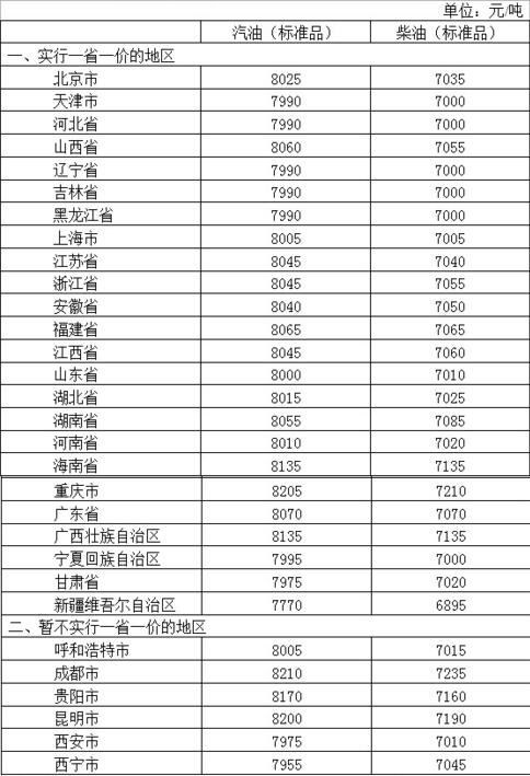 附:各省區(qū)市和中心城市汽、柴油最高零售價(jià)格