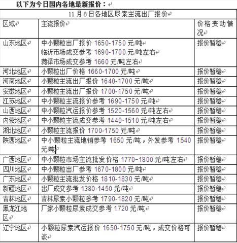 國(guó)內(nèi)尿素市場(chǎng)主流報(bào)價(jià)穩(wěn)定,廠家新單根據(jù)不暢,局部地區(qū)報(bào)價(jià)小幅下滑。11月6日晚,印度方面發(fā)布新一輪尿素招標(biāo)信息,計(jì)劃11月14日開(kāi)標(biāo),11月21日截標(biāo),船期12月30日,11月7日消息稱(chēng)最遲裝船時(shí)間從12月30日提前到了12月19日,供貨時(shí)間縮短。