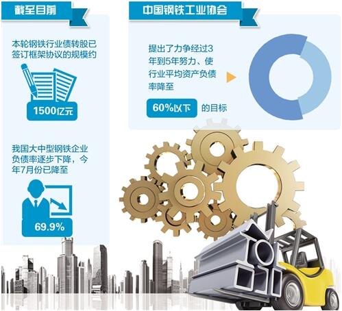 工信部有關(guān)負(fù)責(zé)人在近日召開的第六屆中國鋼鐵技術(shù)經(jīng)濟(jì)高端論壇上表示,截至目前,本輪鋼鐵行業(yè)債轉(zhuǎn)股已簽訂框架協(xié)議的規(guī)模約1500億元。在供給側(cè)結(jié)構(gòu)性改革政策的支持下,我國大中型鋼鐵企業(yè)負(fù)債率逐步下降,今年7月份已降至69.9%。