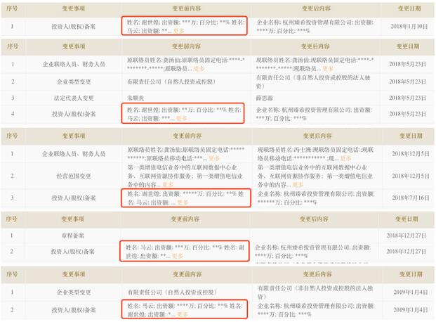 據(jù)國(guó)家企業(yè)信用信息公示系統(tǒng)顯示,上周五,馬云和謝世煌退出浙江淘寶網(wǎng)絡(luò)有限公司的股權(quán)備案,新增杭州臻希投資管理有限公司作為唯一股東。