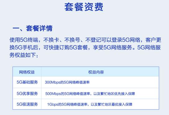 5G基礎(chǔ)服務(wù)5G上網(wǎng)速度限制在300Mbps,5G優(yōu)享服務(wù)5G上網(wǎng)速度限制在500Mbps,5G極速服務(wù)5G上網(wǎng)速度限制在1Gbps。