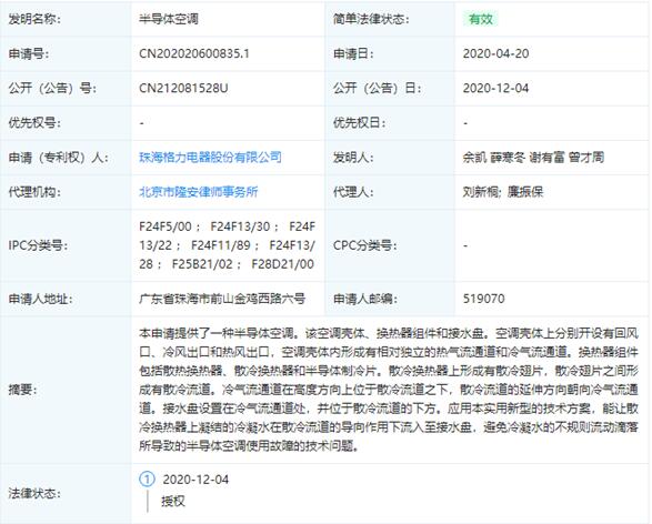 近日,格力電器新增一條“半導(dǎo)體空調(diào)”專利信息。