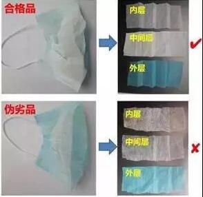 事實上,消費(fèi)者實在舍不得剪開口罩,也可對口罩外觀直接觀察。因為熔噴布結(jié)構(gòu)致密,合格的口罩幾乎不透光,而很多不含熔噴布的偽劣口罩透光度較高,兩者在同樣光源下有顯著區(qū)別。即使在自然光下,合格品佩戴時一點(diǎn)不透明,而偽劣品佩戴時面部皮膚卻依稀可見——可謂“見光死”,鑒定完畢。