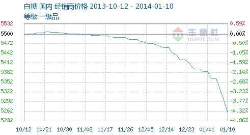 市場:截至2013年12月底,我國食糖主產(chǎn)區(qū)廣西、云南新糖大量上市,春節(jié)前的用糖高峰期采購量也不如往年,制糖企業(yè)承受資金壓力,出現(xiàn)低于成本價(jià)拋售現(xiàn)象;下游春節(jié)前的備貨工作已接近尾聲,需求下降。糖市供過于求,因此近期糖價(jià)持續(xù)下調(diào)。”