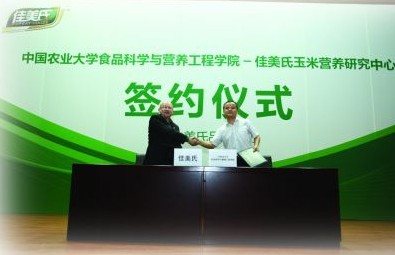 7月16日,中國農(nóng)業(yè)大學食品科學與營養(yǎng)工程學院-佳美氏玉米營養(yǎng)研究中心簽約儀式在京舉行。