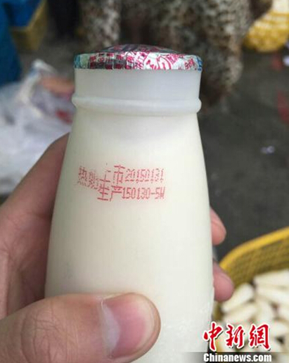 生產(chǎn)日期是2015年1月3日,可外包裝一涂改,就變成了2015年2月6日的“新產(chǎn)品”。標注著浙江省溫州市瑞安某公司生產(chǎn)的早餐“熱奶”牛奶就這樣被“回爐”,然后被送到大家周邊的早餐店里,最終被市民買回家,當營養(yǎng)食品給自己或者孩子喝。日前,溫州瑞安市某飲料有限公司涉嫌更改過期產(chǎn)品生產(chǎn)日期,被公安和工商部門查處。公司7名主要負責(zé)人因涉嫌生產(chǎn)、銷售偽劣產(chǎn)品罪被公安機關(guān)刑事拘留,部分產(chǎn)品及涂改工具被依法查封查扣。