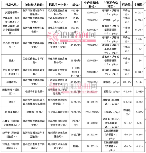 本報記者注意到,13批次不合格“五毛食品”均為非臨沂廠家生產,被抽檢的銷售地址為華豐副食城及部分學校門口商店。對此次抽檢不合格的產品,蘭山區(qū)食品藥品監(jiān)督管理局已組織相關單位依法進行處理。