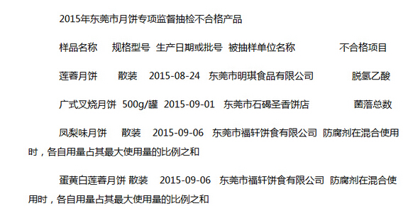 東莞市食藥局表示,目前,月餅抽檢相關(guān)情況正在核實(shí)和處置中,相關(guān)企業(yè)也按規(guī)定正在召回產(chǎn)品。