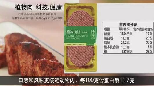 金字火腿公司稱,所生產(chǎn)的植物肉主要由大豆、小麥、豌豆、飲用水、食用醬油、香辛料、甲基纖維素、醋酸酯淀粉、瓜爾膠、甜菜紅、高粱紅、食用香精等組成。