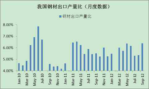 二、9月份我國(guó)鋼材出口占產(chǎn)量比重大幅回升至6%以上