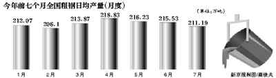 8月9日,國(guó)家統(tǒng)計(jì)局公布數(shù)據(jù)顯示,7月份全國(guó)粗鋼產(chǎn)量6547萬(wàn)噸,日均產(chǎn)量211.2萬(wàn)噸,自4月份以來(lái)已經(jīng)連降三月。