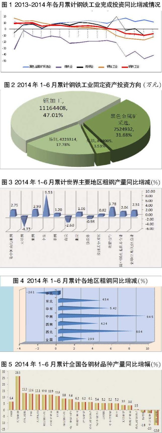 2014年上半年,中國(guó)內(nèi)地鋼鐵生產(chǎn)繼續(xù)穩(wěn)定增長(zhǎng),但同比增速明顯回落,粗鋼日產(chǎn)水平不斷創(chuàng)新高,粗鋼產(chǎn)量占世界鋼產(chǎn)量的比重達(dá)到50.15%。會(huì)員企業(yè)產(chǎn)量增幅小于其他企業(yè)。分地區(qū)來(lái)看,西北和中南地區(qū)同比增速進(jìn)一步提高,華北和西南地區(qū)同比增速大幅回落。江蘇和遼寧省同比大量增產(chǎn),河北省減產(chǎn)最多。同時(shí),隨著化解過(guò)剩產(chǎn)能工作的逐步開(kāi)展,鋼鐵投資進(jìn)一步萎縮,新開(kāi)工項(xiàng)目大幅減少,鋼加工、煉鋼、煉鐵投資比重進(jìn)一步下降,投資方向進(jìn)一步向礦山投資集中。
