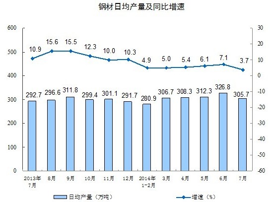 國(guó)家統(tǒng)計(jì)局?jǐn)?shù)據(jù)顯示,2014年7月份,規(guī)模以上工業(yè)增加值同比實(shí)際增長(zhǎng)9.0%,比6月份回落0.2個(gè)百分點(diǎn)。從環(huán)比看,7月份比上月增長(zhǎng)0.68%。1月份-7月份,規(guī)模以上工業(yè)增加值同比增長(zhǎng)8.8%。