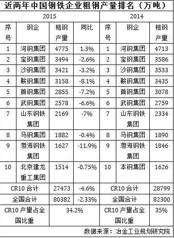 去年,在工信部發(fā)布的《鋼鐵產(chǎn)業(yè)調(diào)整政策(2015年修訂)(征求意見稿)》中提出,“到2025年,前十家鋼鐵企業(yè)(集團(tuán))粗鋼產(chǎn)量(下稱CR10)占全國比重不低于60%,形成三五家在全球范圍內(nèi)具有較強(qiáng)競爭力的超大型鋼鐵企業(yè)集團(tuán),以及一批區(qū)域市場、細(xì)分市場的領(lǐng)先企業(yè)。”