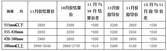表110月份帶鋼結(jié)算價(jià)格和11月份帶鋼指導(dǎo)價(jià)格表單位:元/噸