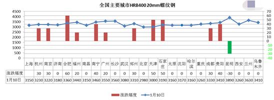 1月10日長(zhǎng)材指數(shù)報(bào)134.17點(diǎn),較上一交易日上漲0.40%。今日期螺1705午后大單封漲停,現(xiàn)3167漲6.99%,放量增倉(cāng)。今日建材現(xiàn)貨市場(chǎng)價(jià)格震蕩走強(qiáng),上海、濟(jì)南、北京、重慶等11個(gè)城市螺紋鋼價(jià)格上漲20-60元/噸。據(jù)統(tǒng)計(jì),全國(guó)25個(gè)主要市場(chǎng)HRB400(20mm)螺紋鋼價(jià)格報(bào)3302元/噸,較上一交易日價(jià)格上漲15元/噸。