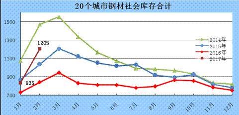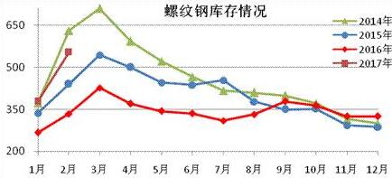 中鋼協(xié):2017年2月螺紋鋼庫存環(huán)比增46.4%