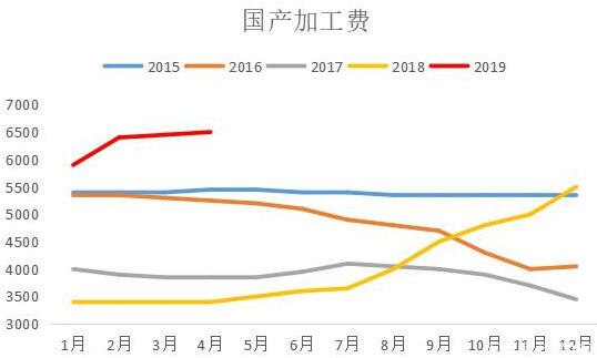 從上圖可以看出,2019年鋅冶煉加工費高達6500元左右,遠高出往年同期,高利潤勢必刺激企業(yè)提高產(chǎn)量。產(chǎn)量的增加對鋅市利空,后市鋅價上漲空間不大。
