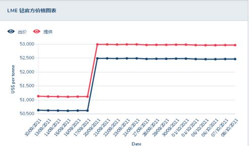據(jù)LME鈷價(jià)走勢圖可以看出,國際鈷價(jià)上漲后高位維穩(wěn),鈷價(jià)高位支撐仍存。10月MB鈷價(jià)延續(xù)漲勢持續(xù)上漲,國際鈷價(jià)持續(xù)大漲,10月國際鈷價(jià)連續(xù)7個(gè)交易日鈷價(jià)上漲,國際鈷價(jià)累漲,刺激國內(nèi)鈷價(jià)上漲,國慶期間國內(nèi)鈷價(jià)暫穩(wěn),節(jié)后國內(nèi)鈷價(jià)上漲壓力累積,刺激鈷價(jià)大漲,10月國內(nèi)鈷價(jià)欲破4。