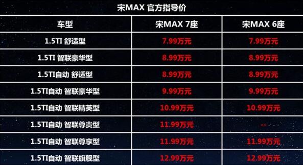 4月17日,我們從官方渠道獲悉比亞迪宋MAX 6座版正式上市銷售,推出2種動(dòng)力組合共7款車(chē)型,售價(jià)7.99萬(wàn)-12.99萬(wàn)元。新車(chē)在外觀上延續(xù)了7座版本車(chē)型的設(shè)計(jì)風(fēng)格,內(nèi)部采用2+2+2形式的座椅布局。