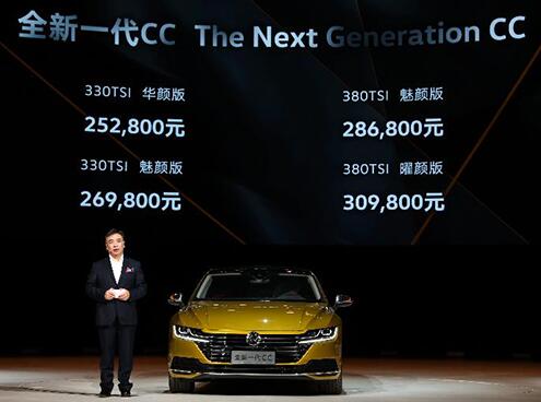 8月28日,一汽-大眾大眾品牌旗艦車(chē)型——全新一代CC正式上市,新車(chē)共4款車(chē)型,提供330TSI和380TSI兩種動(dòng)力選擇,并匹配7速濕式DSG雙離合變速器,售價(jià)區(qū)間25.28-30.98萬(wàn)元。