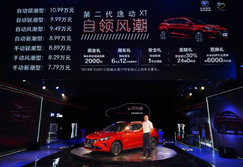 發(fā)布會上,長安汽車總裁助理、乘用車營銷事業(yè)部總經理葉沛公布了第二代逸動XT的價格,為7.79-10.99萬元。凡在今年10月31日前購買第二代逸動XT的用戶即享“五重大禮”, 現金禮:購車即享2000元現金優(yōu)惠;用車禮:購車即享 6年或12次免費保養(yǎng);安全禮:購車即送一年交強險;金融禮:尊享首付30% ,24期0利率;置換禮:長安品牌車主置換享6000元補貼。另外,作為優(yōu)酷&浙江衛(wèi)視《這!就是灌籃》節(jié)目官方用車獨家合作伙伴,購買第二代逸動XT的前1000名車主,還將免費額外獲得定制版節(jié)目比賽用球1個,更有機會與灌籃學員親密接觸。