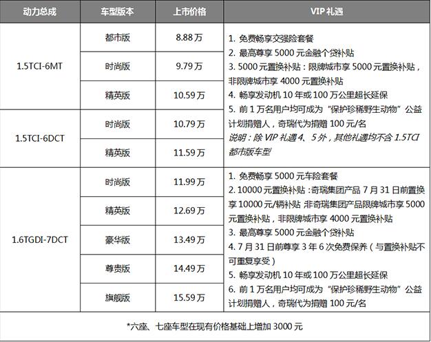 5月28日晚,奇瑞汽車旗下瑞虎SUV家族旗艦車型——全新一代瑞虎8于成都量子光競技中心正式上市,新車共推出1.6TGDI+7DCT、1.5TCI+6DCT、1.5TCI+MT三種動力總成共10款車型,并提供珍珠白、曜石黑、鈦金灰、大漠金、萊茵藍、普羅旺斯紫等6種車身顏色供用戶選擇,官方售價區(qū)間8.88-15.59萬元。與此同時,奇瑞汽車還為全新一代瑞虎8的首批用戶提供多重VIP禮遇。