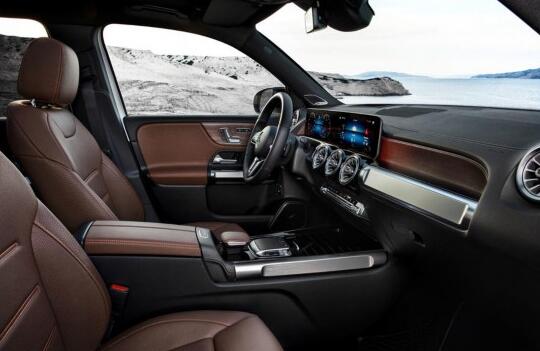 內飾部分,GLB采用獨特風格的儀表板,采用奔馳的寬屏駕駛艙,為一個兼?zhèn)鋬x表盤和信息娛樂功能的單一數字面板,由最新版本的MBUX界面控制。奔馳表示,五座版前排乘客的頭部空間為1035mm,后排的腿部空間為967mm。后備箱560升。在七座款式中,兩個額外的座位可以折疊隱藏到行李箱地板里,這體現了GLB進車簡單方便的特點。新車最初將包括四款車型,除了頂配的柴油版以外,其余車型都將以前輪驅動作為標準配置。
