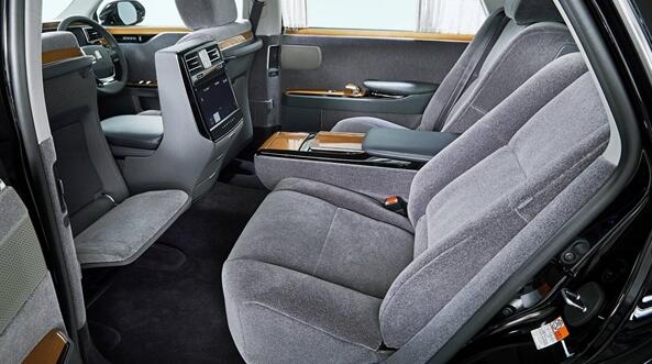 外觀方面,新車保持普通版車型莊重、氣派的設(shè)計(jì)風(fēng)格,豎條狀密輻進(jìn)氣格柵中央帶有手工雕刻的金鳳凰logo。同時(shí)新車還在前牌照和兩側(cè)后門處,配有皇室專用徽章——菊之御紋。